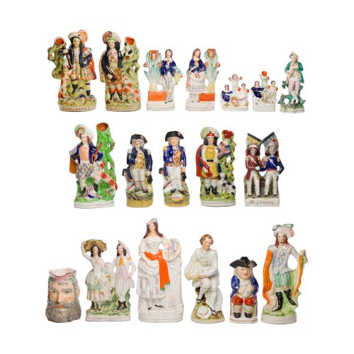 (18) items of various shapes, sizes, designs and colors including spill vases, figurines, pitchers and mugs, some having flatbacks