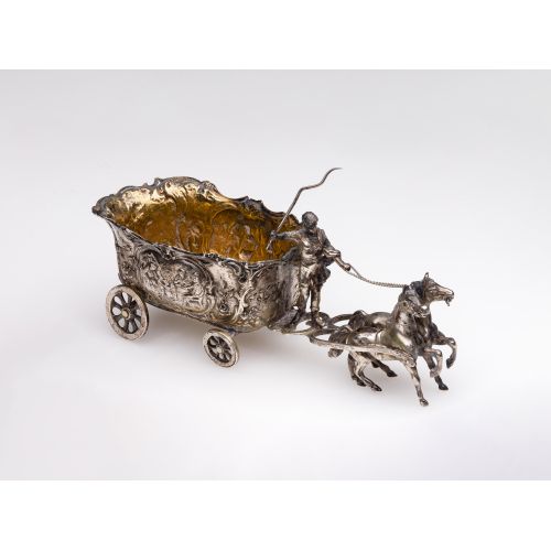 Having a soldier driving two horses pulling a wagon with moving wheels (marked "800")