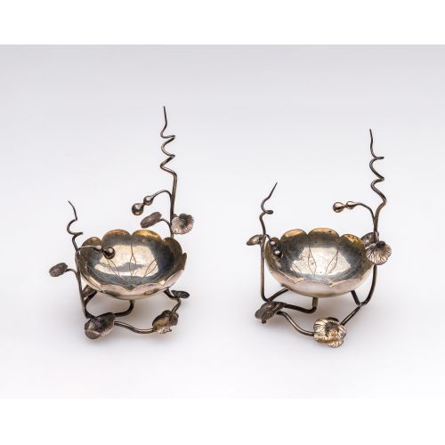 Pair of botanical style open salt cellars (unmarked 0.830)