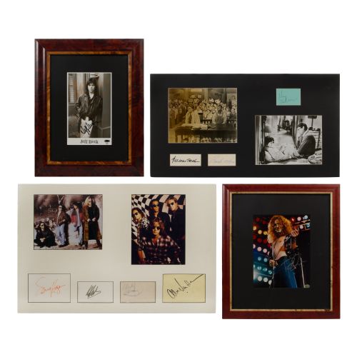 (4) items including double-mounted autographed photographs of Gregory Peck, Brock Peters and Mary Badham of "To Kill a Mockingbird", double-mounted autographed photographs of the band Van Halen, a framed, signed photograph of Robert Plant and a framed, signed photograph of Jeff Beck