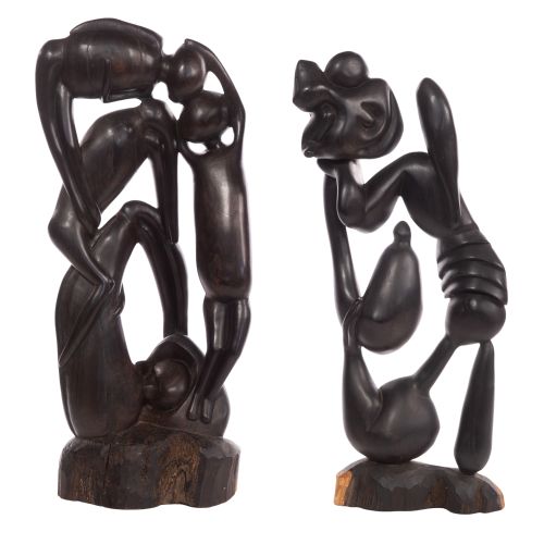 (2) similar items of reticulated figures supporting those above them, having carved signature