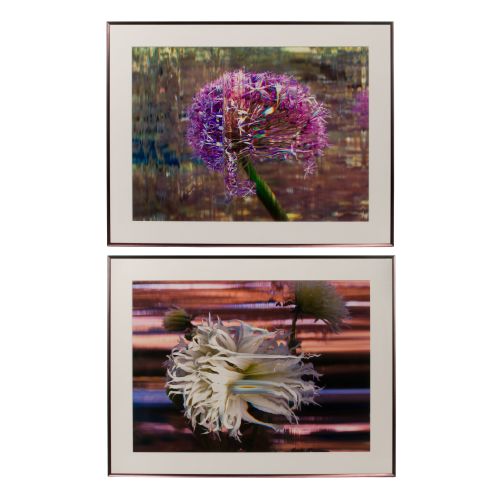 (2) 2012 prints depicting flowers, both signed, #1/3 on illustrated labels verso, including "Dahlia Tsuki Yore No Shisha, 2010" and "Allium Afatunese, 2011", matted behind acrylic in black metal frames