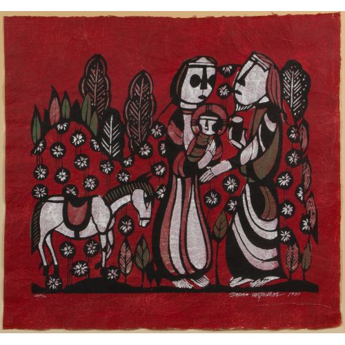 Lot #193: Sadao Watanabe (Japanese, 1913-1996) "The Holy Family" Stencil Woodcut
