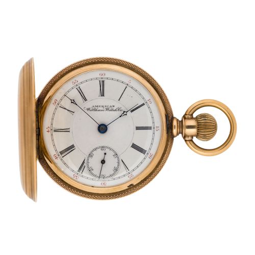 Serial #5740130 dating to c.1893, 15-jewel movement, Cresent St. grade, white dial having Roman numerals, blue hands, subsidiary dial for seconds, stem wind, lever set (marked "Warranted 14k U.S. Assay" inside case)