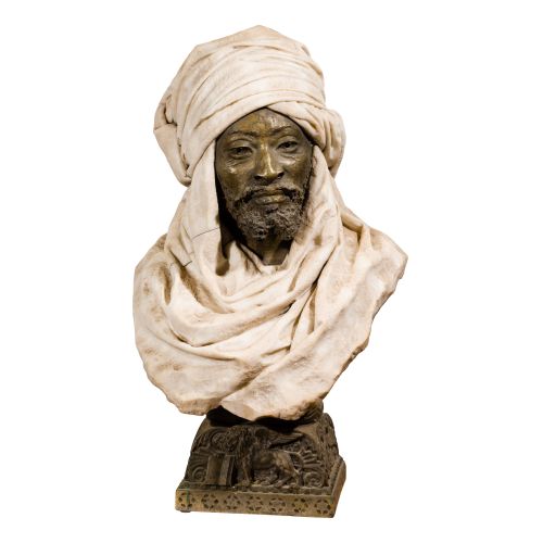 Lot #204: Pietro Calvi (Italian, 1833-1884) "The Moor of Venice" Bronze and Marble Bust