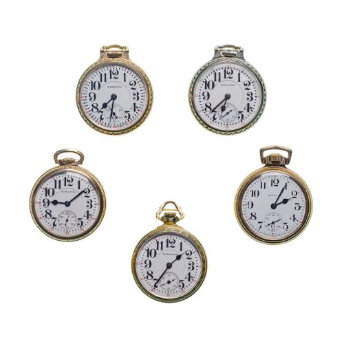 Lot #585: Hamilton Railroad Open Face Pocket Watch Assortment