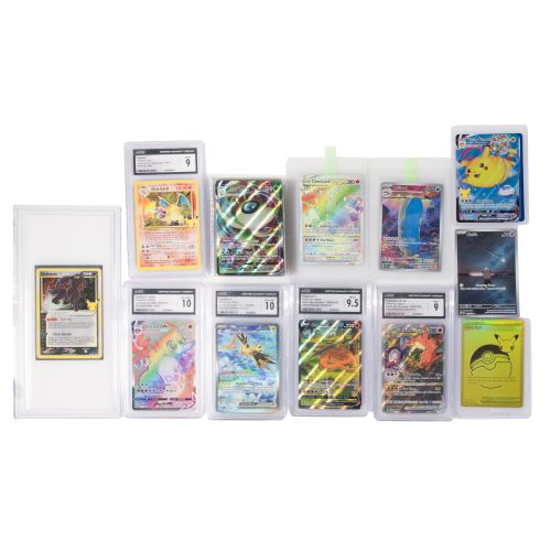 Approximately (40) items including (5) graded and slabbed by CGC having holograms, an ungraded Umbreon Gold Star #17/17 in a top-loader and slabbed, (5) in top-loaders and approximately (30) cards in a small card booklet
