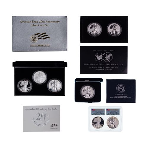 Including 2006 20th Anniversary set, 2012-S 75th Anniversary Mint Set PF-69 PCGS, 2019 Enhanced Reverse proof and 2021 Reverse Proof two-coin set