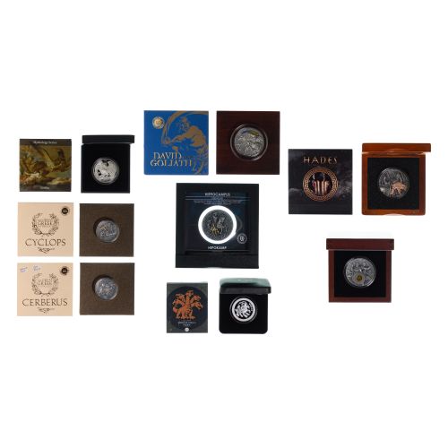 (8) limited edition silver rounds, 12-ozt total weight, including Hydra, Ares and Mars, Hades and Cyclops