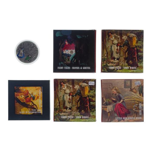 (5) limited edition rounds, each 3-ozt, including Hansel & Gretel, (2) Snow White, Little Red Riding Hood and Alice in Wonderland
