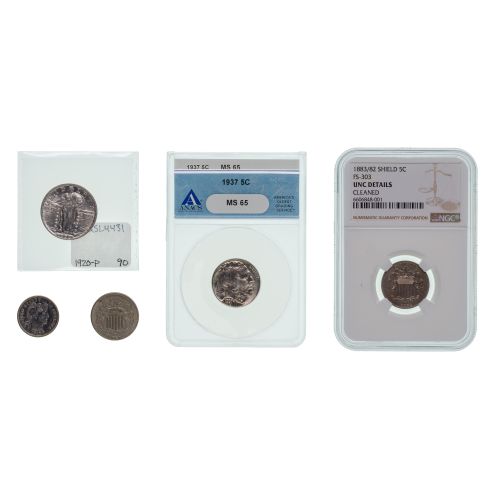 Including 1920 Standing Liberty 25c, 1910-D Barber 10c, 1883/82 Shield 5c Unc. Details NGC, 1883 Shield 5c and 1937 5c MS-65 ANACS