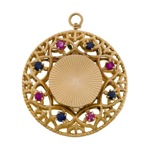 Lot #232: 14k Yellow Gold, Ruby and Sapphire Pendant / Brooch