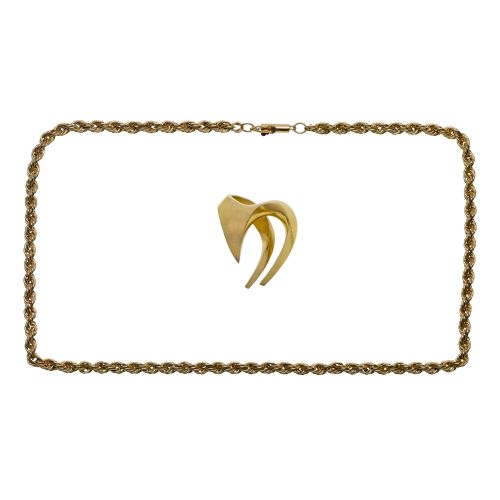 (2) items including a twisted rope necklace and a pendant (marked "14k")