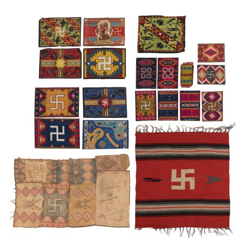 (22) items including a Nootka tribe lidded basket, (20) tobacco felts and a souvenir wool rug