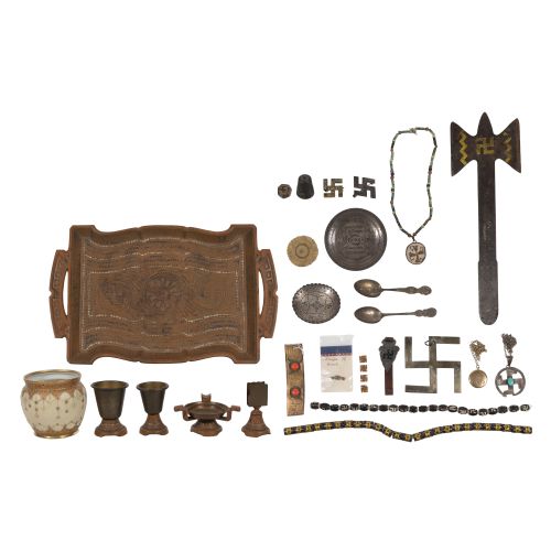 (25) items including tobacco set, porcelain jar, jewelry, sterling silver and silverplate spoons and various objects