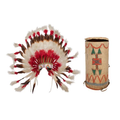 Lot #689: Native American Headdress and Parfletch Case