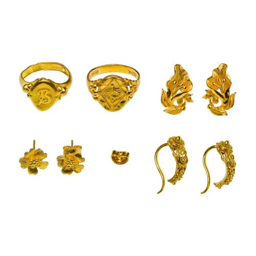 Lot #251: Thai 23k Yellow Gold Earring and Ring Assortment