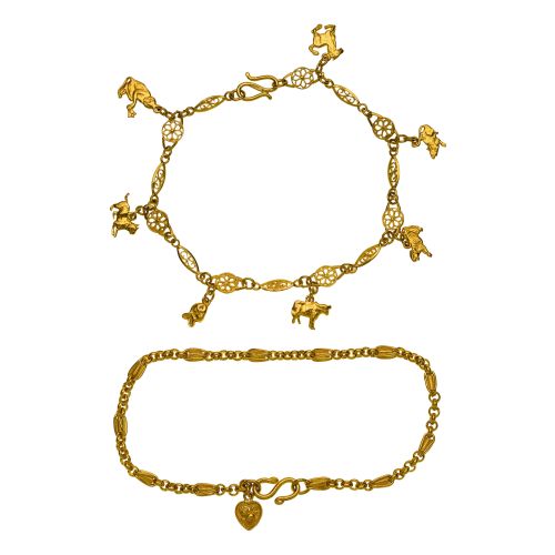 (2) items including a 3-and-1 chain bracelet and a charm bracelet (foreign marks)