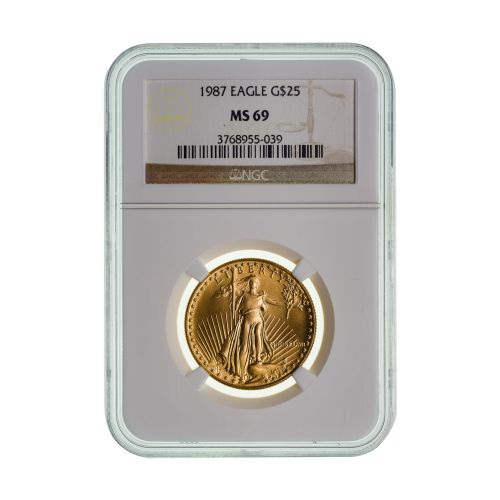 Lot #574: 1987 $25 Gold Eagle MS-69 NGC