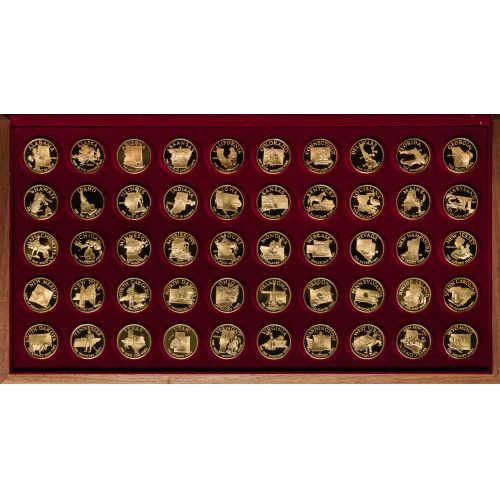 (50) gold plated sterling silver medals, each weighing 500 grains, in wood presentation box