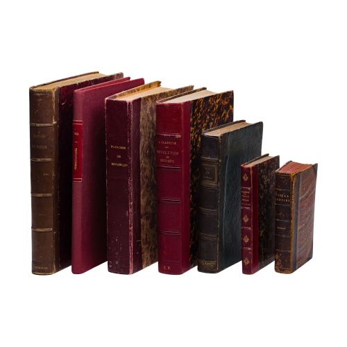 (7) items including "Communardiana" title of a series of political cartoons created during the Paris Commune, "Planches de Botanique" a series of plant etchings, "Album du Siege", most having leather bindings