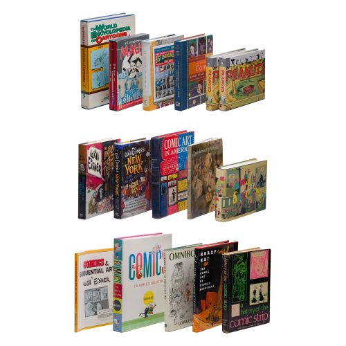 (14) items of various themes and works including "Maus I and II", "The Complete Works of Charles Schultz", "The Encyclopedia of Comics", hard and soft cover