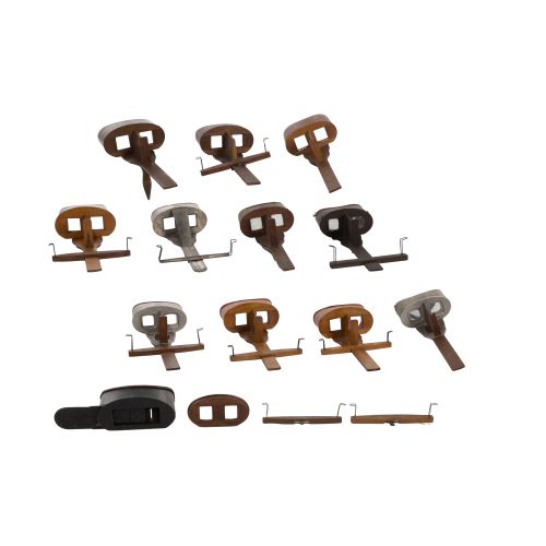 (16) items of various sizes, some having etched / embossed metal over wood, trimmed in velvet, folding handle, wire stereoview holders as well as various parts