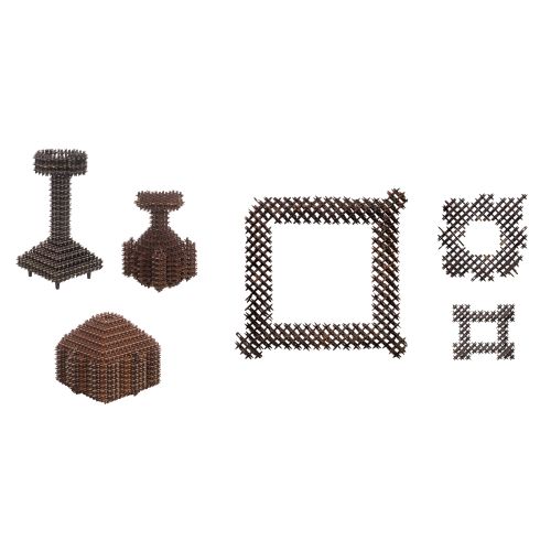 (6) items having the Crown of Thorns pattern consisting of layered, intricately carved and geometrically notched wood forming a three-dimensional lattice