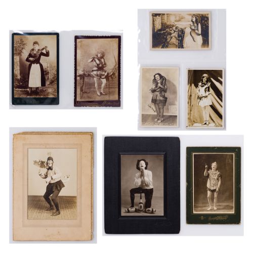 Approximately (70) items including cabinet cards, cartes de visite, press and publicity photographs, snapshots and postcards, contained in a binder labeled "Circus / Jugglers / Clowns / Stilt Walkers / Contortionists / Etc"