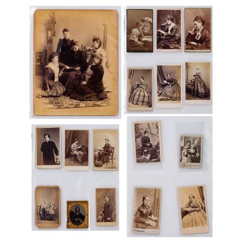 Approximately (50) items of various sizes and mediums including postcards, cartes de visite, photographs and cabinet cards depicting people reading