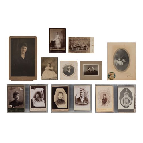 Approximately (195) items, primarily cabinet cards, some photographs, displaying individual portraits, some group portraits, some contained in a binder and loose binder sleeves