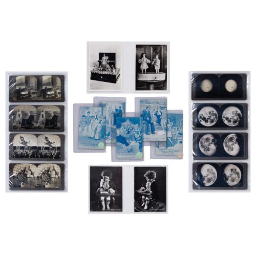 Approximately (100) items of various shapes, sizes and subjects, including postcards, cartes de visite and photographs featuring the moon, robots, automation and advertising, in five labeled binders