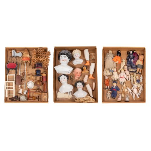 Approximately (50) items of various shapes and sizes including porcelain doll parts, miniature dolls and doll furniture