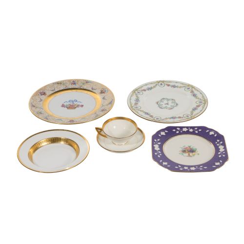 Approximately (40) items including plates, bowls, cups, saucers from makers such as Minton, Wedgwood, Dresden and Regnier & Shoup