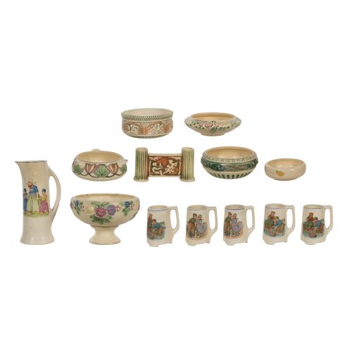 (13) items including bowls, vases, mugs, pitcher in various designs such as Donetello, Corinthian, La Rose, Persian, Rozane and Dutch (transferware), some marked on underside