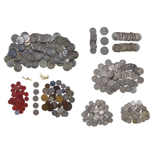 Including $41.80 face value US 90% silver in Mercury and Roosevelt 10c, Standing Liberty and Washington 25c and Walking Liberty, Franklin and 1964 Kennedy 50c, $40.00 face value US 40% silver in Kennedy 50c as well as US coins, World coins, tokens and 14k yellow gold jewelry (3.16 grams)