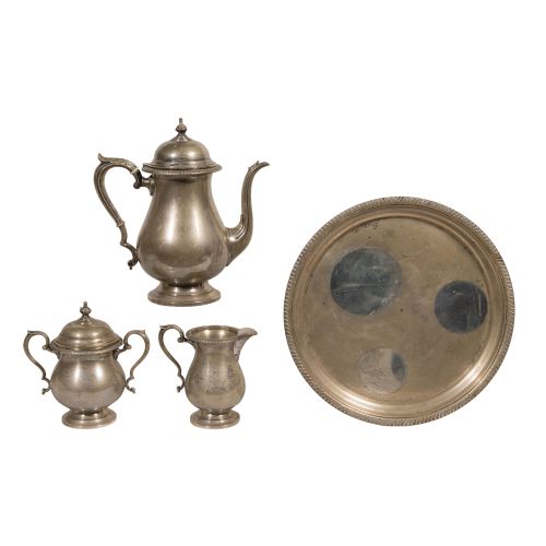 (4) items including a coffee pot, a lidded sugar, a creamer and a tray (all marked "sterling")