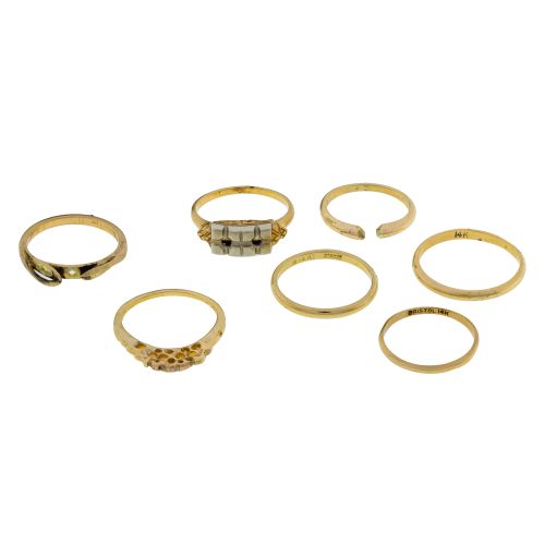 (7) items including (4) bands and (3) having space for gemstones (most marked "14k")