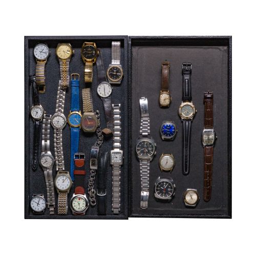 (23) items of various shapes, sizes and styles, from makers such as Tissot, Elgin, Omega, Hamilton, Seiko, Timex, Bulova and Swatch