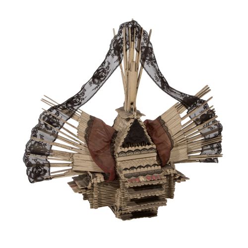 Undated, unsigned, painted Popsicle sticks, fabric fragments, faux finger nails and pins