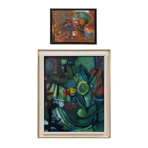 (2) total items, including an undated, signed Kinnaird oil on board having a black painted wood frame; together with an undated oil on canvas, signed "Beckman" having a figural sketch verso within a whitewashed wood frame