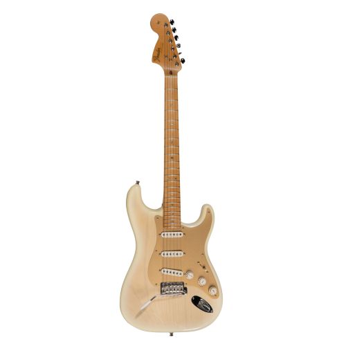 2002, model #MH039 having a large reverse headstock, translucent blonde finish and gold-tone anodized pick guard, facsimile signature to headstock as well as a tweed covered Fender hard case, no key, containing Michiya Haruhata signed COA, photograph, Japanese language invoices and inserts
