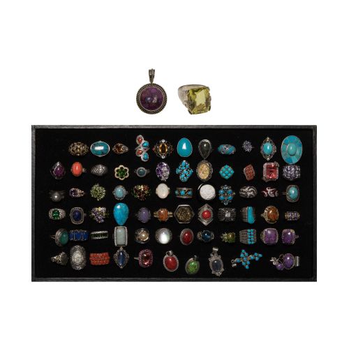 Approximately (70) items all having stones (all marked "925" / "sterling"); together with (2) costume items