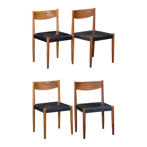 A set of (4) Frem Rojle curved back rest and vinyl covered seat (marked on undersides)