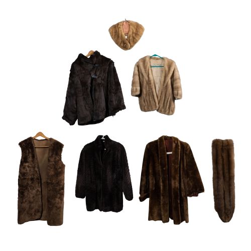 (7) total items of various styles, colors and sizes including jackets, stoles, collars and a vest; together with a faux fur coat