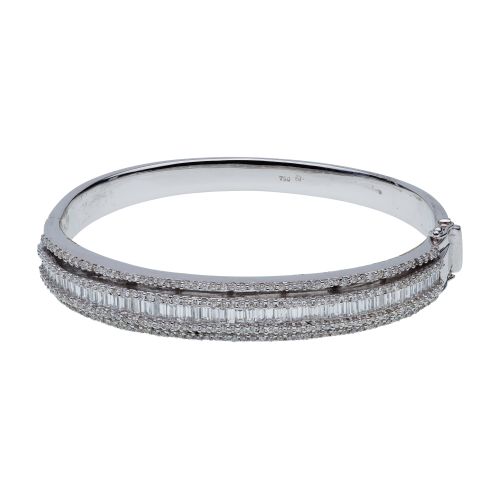 Lot #202: 18k White Gold and Diamond Hinged Bangle Bracelet