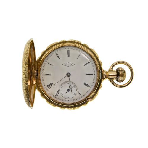 Serial #3833563 c.1890, having an ornate hunters case and 15-jewel movement (marked "Warranted 14k U S Assay")