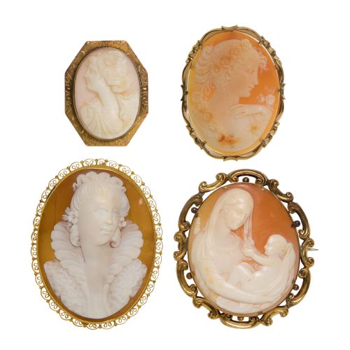 Lot #200: 14k and 10k Yellow Gold and Carved Shell Cameo Assortment