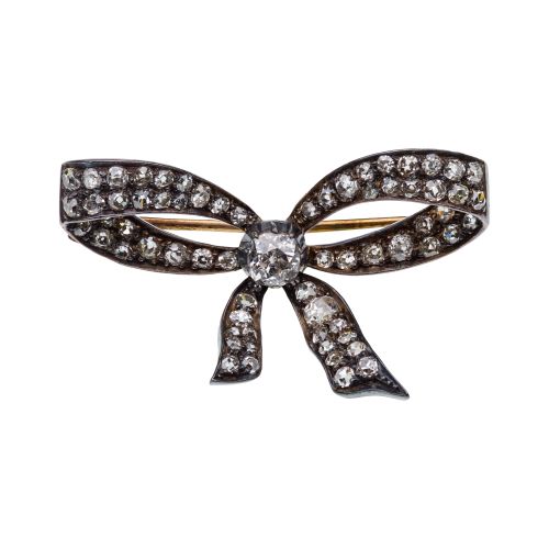 Lot #199: Gold, Silver and Diamond Bow Brooch