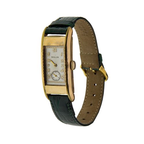 Having a 17-jewel manual wind movement, interior of the case stamped "Rolex Observatory," on green leather band